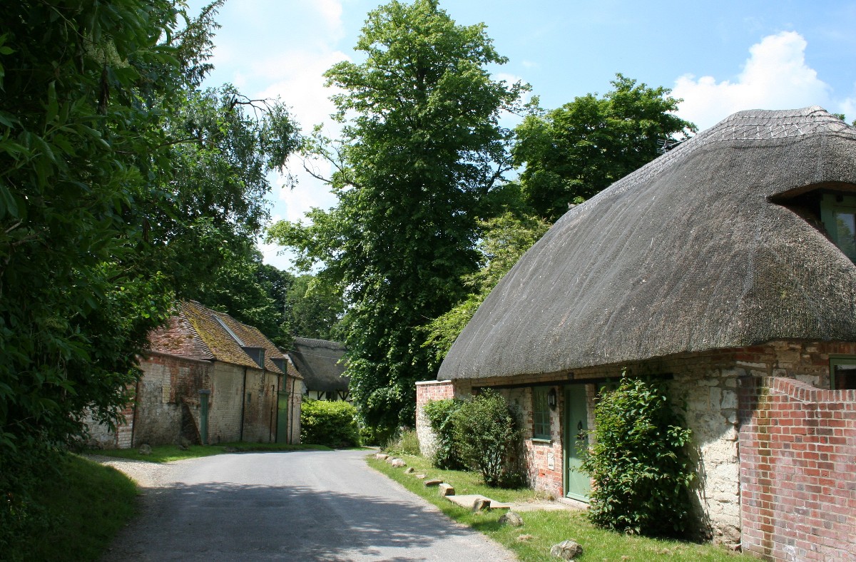 an attractive little village with several thatched cottages,